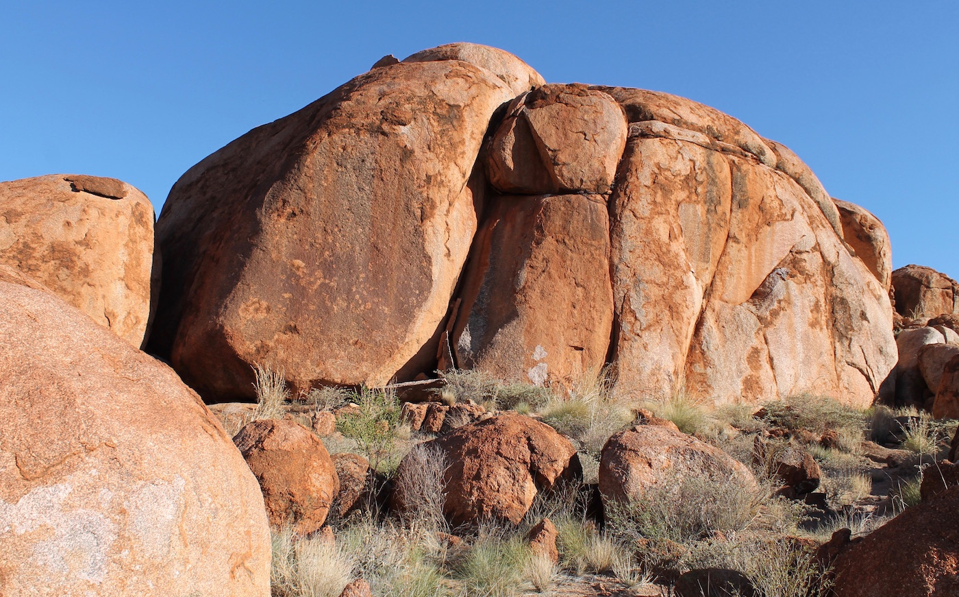 Ik bereik het doel van deze dag rond een uur of vier in de namiddag. Hier rondgestrooid in het landschap liggen een ongelooflijk aantal grote ronde boulders. Een heilige plek.