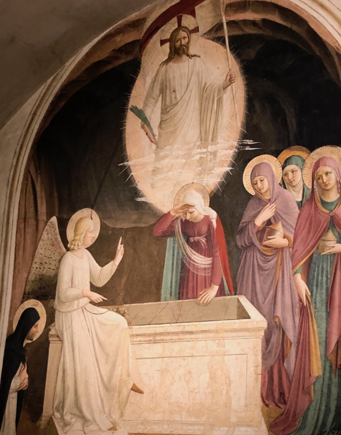 Mary Magdalene at the empty tomb with Jesus arisen and in the next painting Jesus letting Mary know not to touch him as he is in the Otherworld.