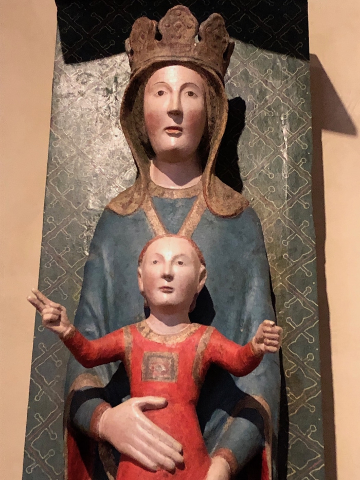 And as saint, a detail of from a painting with Madonna with Child and saints by an unknown artist, 1340.