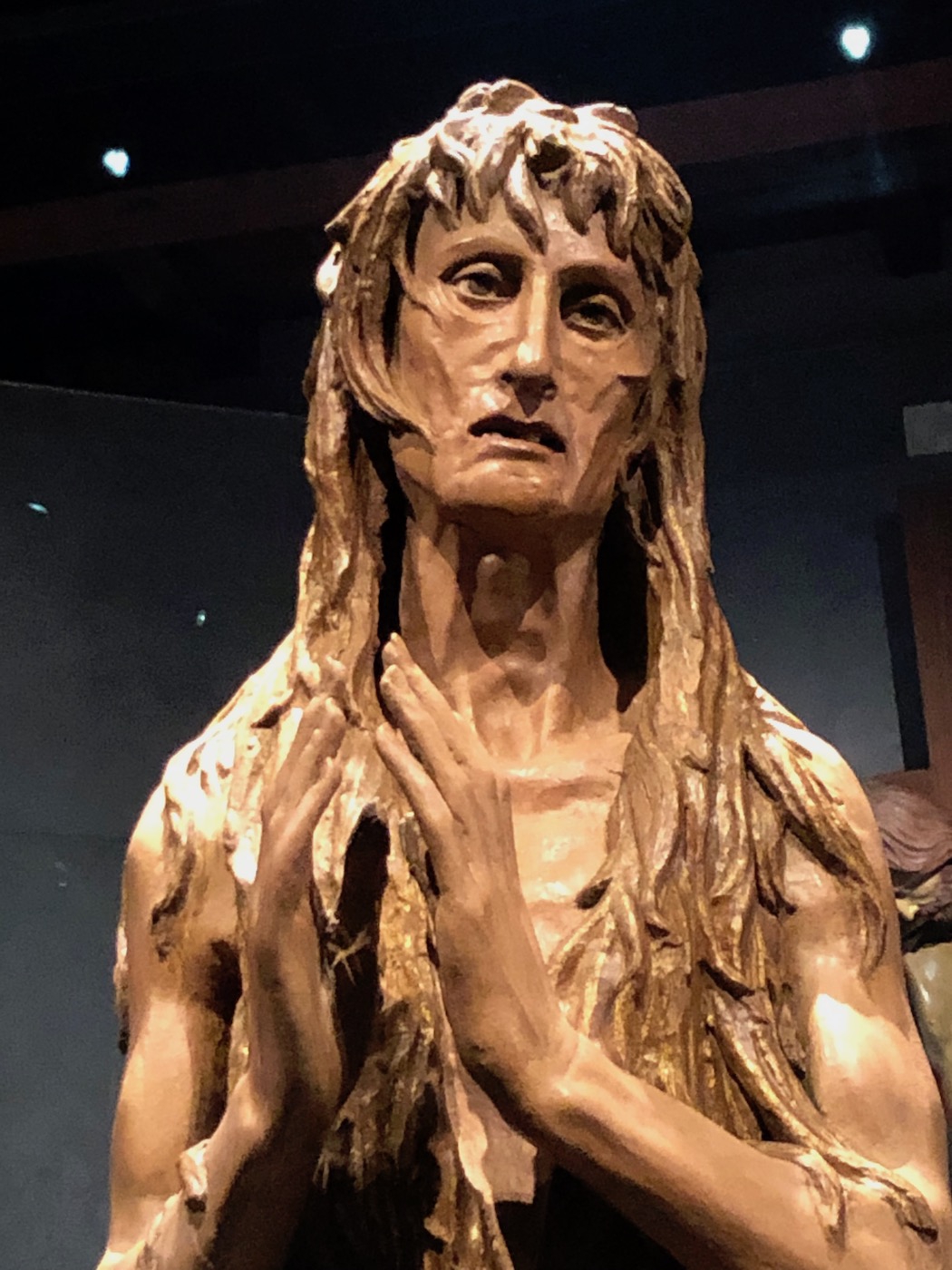 Donatello is one of the famous sculptors. One of his sculptures is really interesting. it is a statue in wood where he depicts Mary Magdalene in a forlorn, desperate mood, old and lonely. It is easy to name this statue as Mary the prostitute or the sinner, as she is still often named.