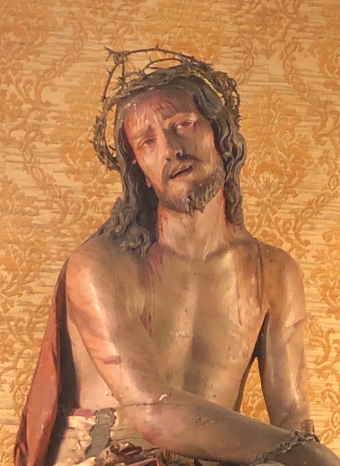 There is a very gentle statue of Jesus, made of wood, that touched me in the San Marco church, on the San Marco Piazzo. I did not write down the name of the sculpture.