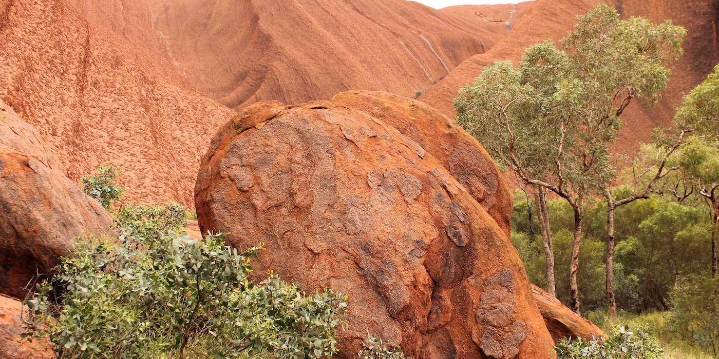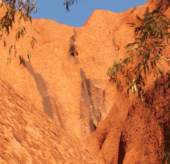 De coherente, glooiende en zachte vorm van Uluru heeft tal van ‘cracks in the rock’, en kent veel bijzondere plaatsen.