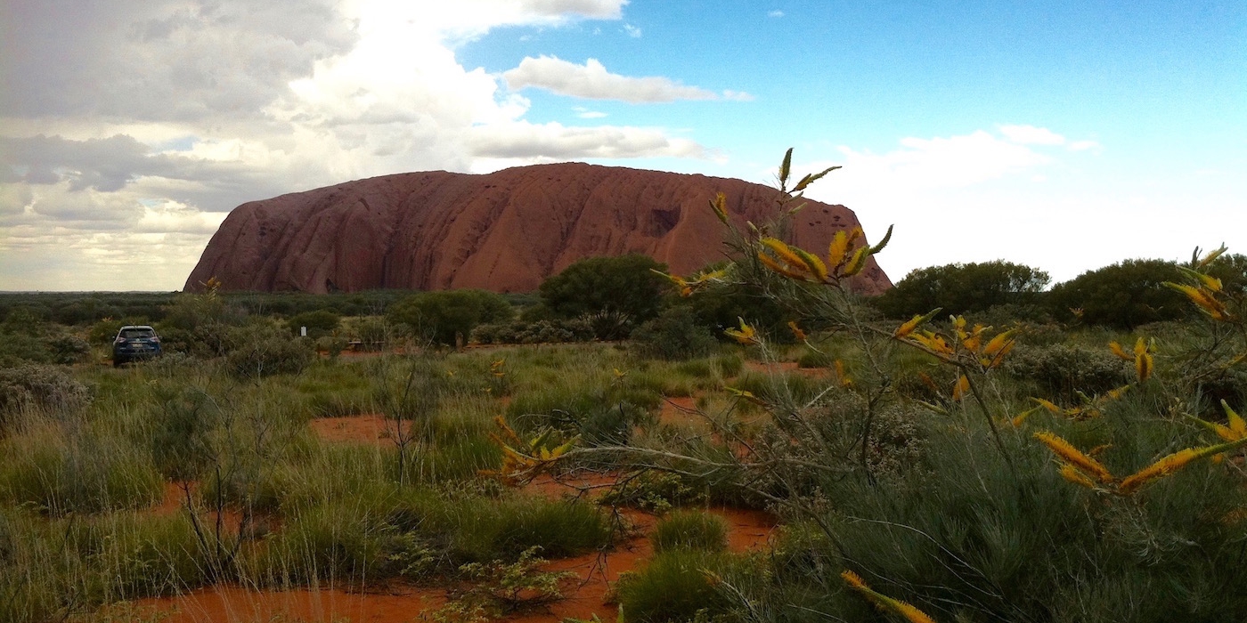 De wandeling rond de rots vraagt zo’n 3,5 uur. Het is 10 km. Samen met mijn wandelmaatjes nemen we de tijd om te kijken, te voelen, stil te staan of er flink de pas in te zetten als het wandelpad verder van de rots verwijderd is.