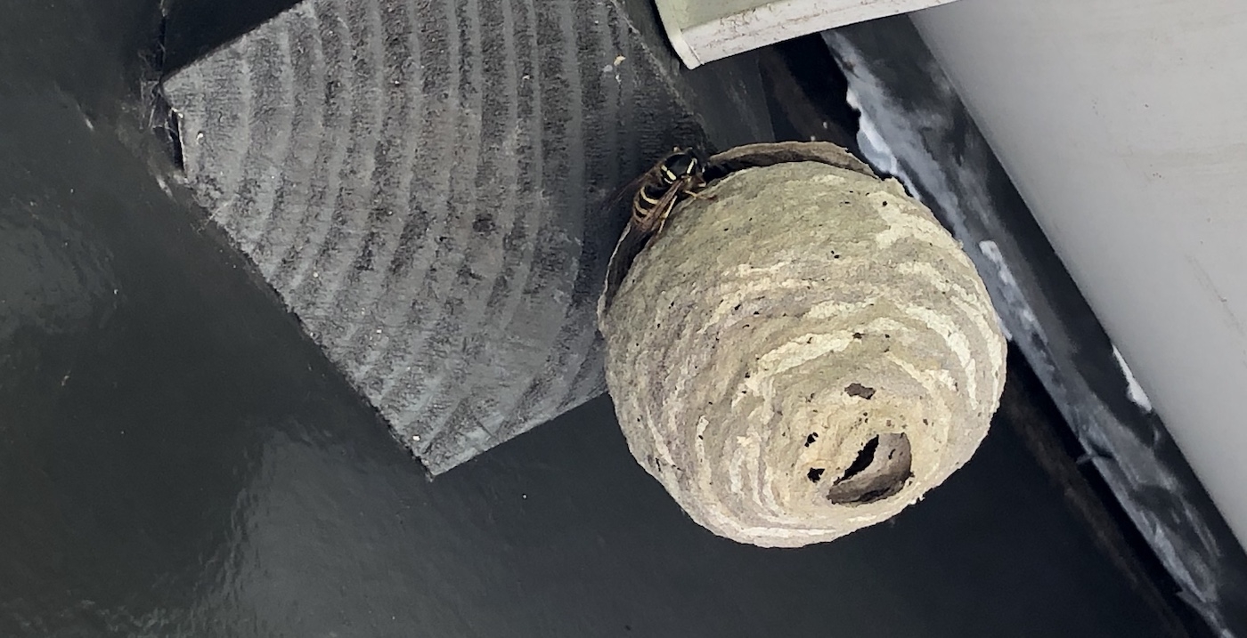 Er groeien twee grijze cocons aan de oversteek van mijn dak boven mijn slaapkamerraam. De ene is wat groter dan de andere en ze zijn fascinerend mooi. Zijn het wespennesten? Gaan ze groter worden? Kan ik ze laten hangen? Kom ik in de problemen als ik dat doe?